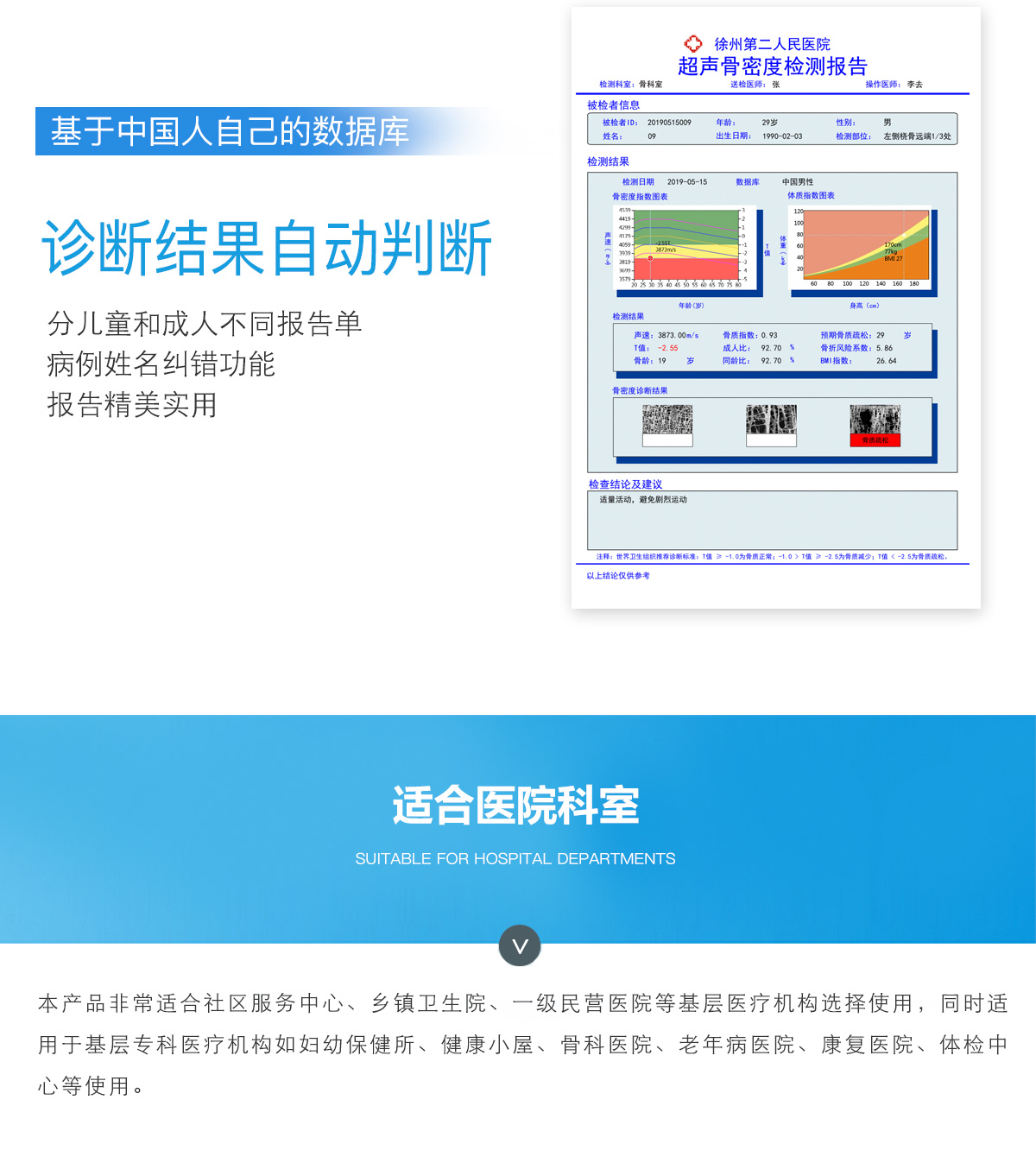 ■ 軟件優(yōu)勢::BMD-A系列超聲骨密度檢測儀一臺儀器裝配有智能分析系統(tǒng),經(jīng)濟(jì)實(shí)用。可測量0-100歲人群。